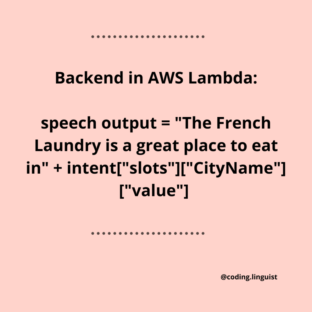 Each intent is “handled” at the backend, using AWS lambda for instance, and provides appropriate responses for each intent.